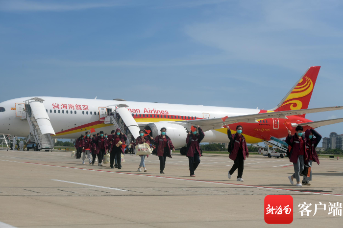 5月23日,海南援滬醫療隊隊員乘坐包機抵達三亞鳳凰國際機場。記者沙曉峰攝
