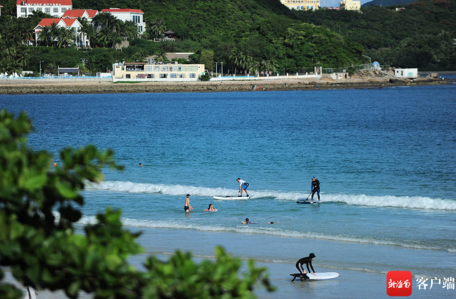 7月14日,游客在三亞大東海沖浪。記者 沙曉峰 攝