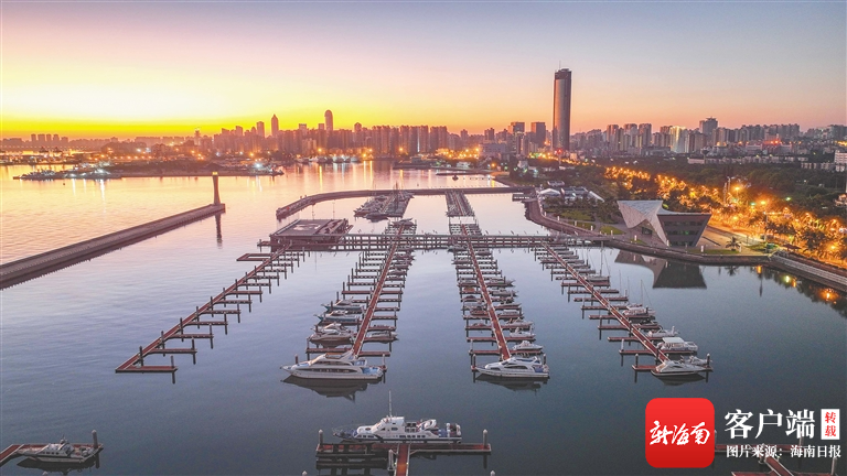 七月二十三日清晨,在海口市國家帆船基地公共碼頭,部分參加2022年中國國際消費品博覽會游艇展的游艇已抵達碼頭停泊。海南日報記者 陳元才 攝
