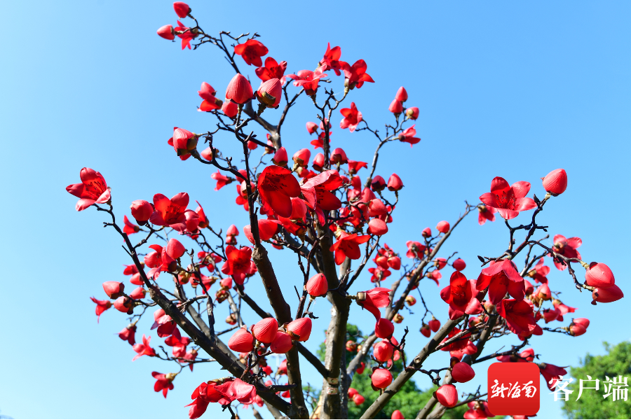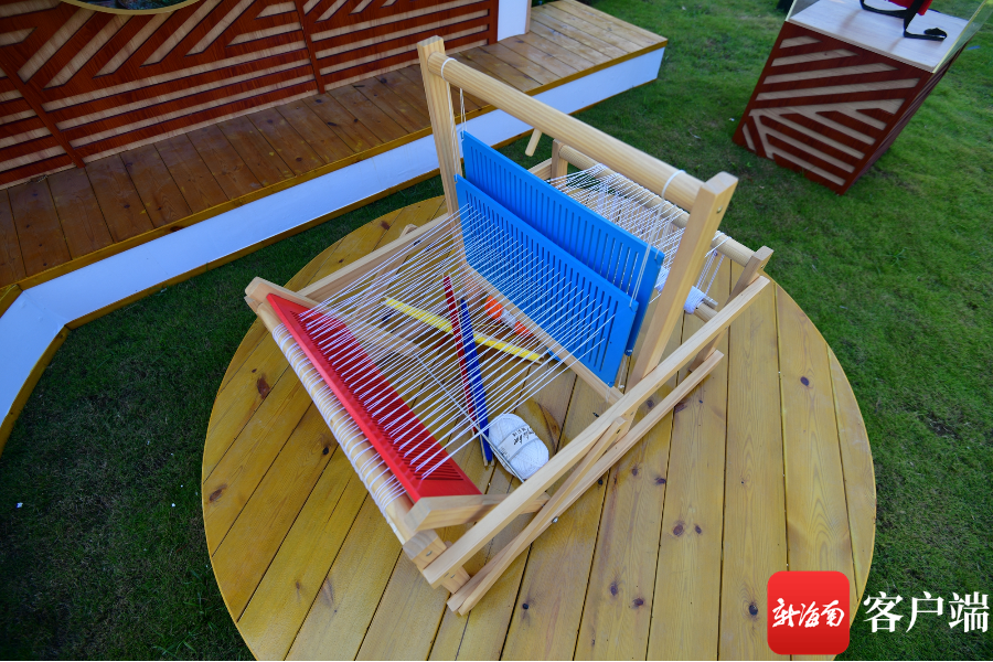 記者在現場看到,昌江藝術打卡區雖然面積不大,卻集中展示了昌江特色。在打卡區正中央,擺放的織錦架和黎錦,黎族人民日常的生活狀態,仿佛就在眼前上演。打卡區一側,一株紅艷艷的大型仿真木棉花,“開得”如霞似火;另一側,融合昌江特色茅草屋元素的太陽傘次第擺放,充滿著樸實的藝術氣息。