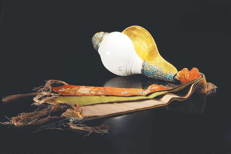 清乾隆御制鏨胎琺瑯八吉祥紋展翼法螺。