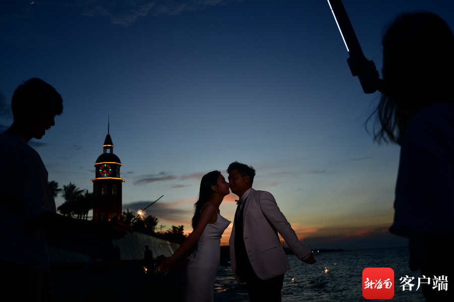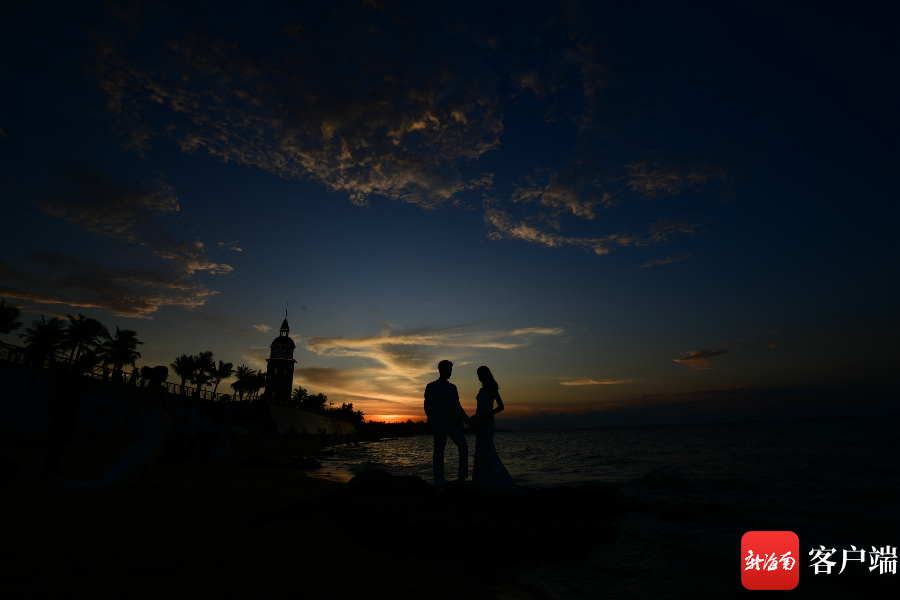 8月1日傍晚,在海口西海岸拍攝婚紗照的新人。記者 陳衛東攝