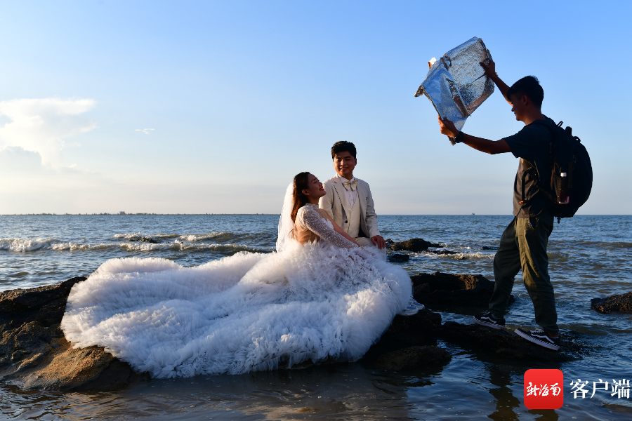 新海南客戶端、南海網、南國都市報8月2日消息 (記者 陳衛東)海口西海岸觀海臺是拍攝婚紗照的好地方,這里除了大海、沙灘,還有礁石,美不勝收。