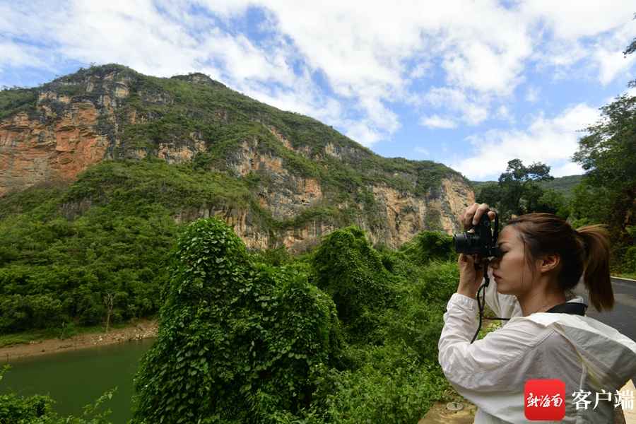 2022年“走進(jìn)國家公園 探訪熱帶雨林”主題采訪團(tuán)的記者在昌江黎族自治縣王下鄉(xiāng)拍攝“十里畫廊”。記者 陳衛(wèi)東攝