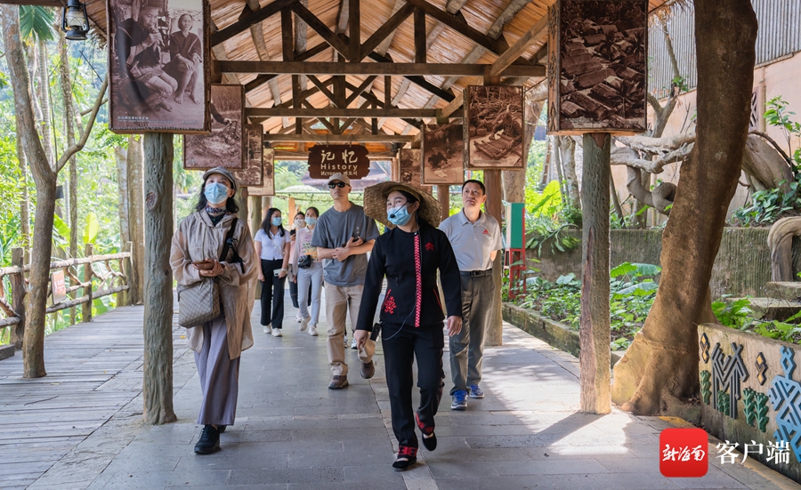 秋日的檳榔谷草木蔥蘢。采風(fēng)團(tuán)一行在來(lái)自黎族杞方言片區(qū)的講解員阿靜的引導(dǎo)下,沿著蜿蜒的雨林石徑探訪非遺村,穿過(guò)文化長(zhǎng)廊,在一幅幅珍貴圖像前細(xì)細(xì)品讀,感悟黎族文化的滄桑巨變。