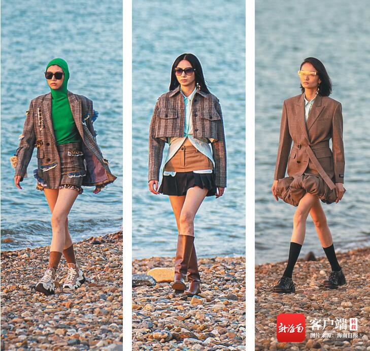 時裝秀與海濱風光碰撞,會擦出什么樣的火花?7月27日,在海南國際會議展覽中心旁的一片沙灘上,時裝品牌DAMOWANG與自然共舞。一排模特在大海的映襯下,用貓步揚起細沙,場邊不少觀眾將這一幕納入了自拍背景中。時裝周不僅為國內設計師們搭建了連接國際的舞臺,還推動了地域合作與交流,豐富海南自貿港時尚領域新業態。