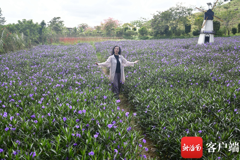 文化名家體驗(yàn)官徜徉在屯昌夢幻香山共享農(nóng)莊的花海中。記者 陳衛(wèi)東 攝