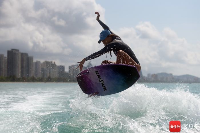 游客在三亞體驗尾波沖浪。記者 沙曉峰 攝