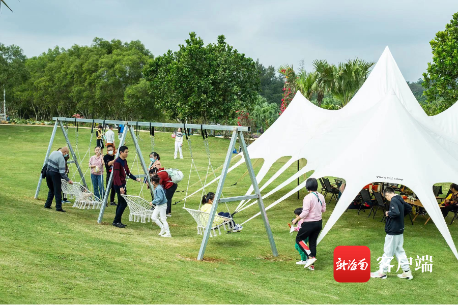花展吸引了不少市民游客相約來到三角梅共享農莊打卡拍照。人們陶醉在如畫一般的田園風光之中,享受著田園生活的美好時光。在露營區,孩子們在家人的陪同下蕩秋千,臉上洋溢著喜悅之情。