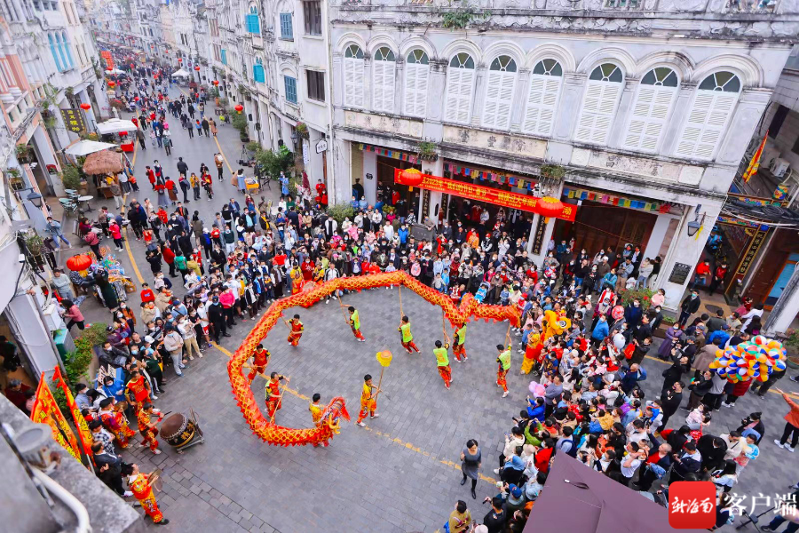 海口騎樓老街龍獅賀春表演。海口市旅文局供圖