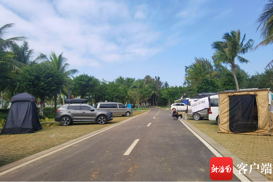 ?西海岸停放著大量的來(lái)海南游玩的房車族。記者 汪承賢 攝