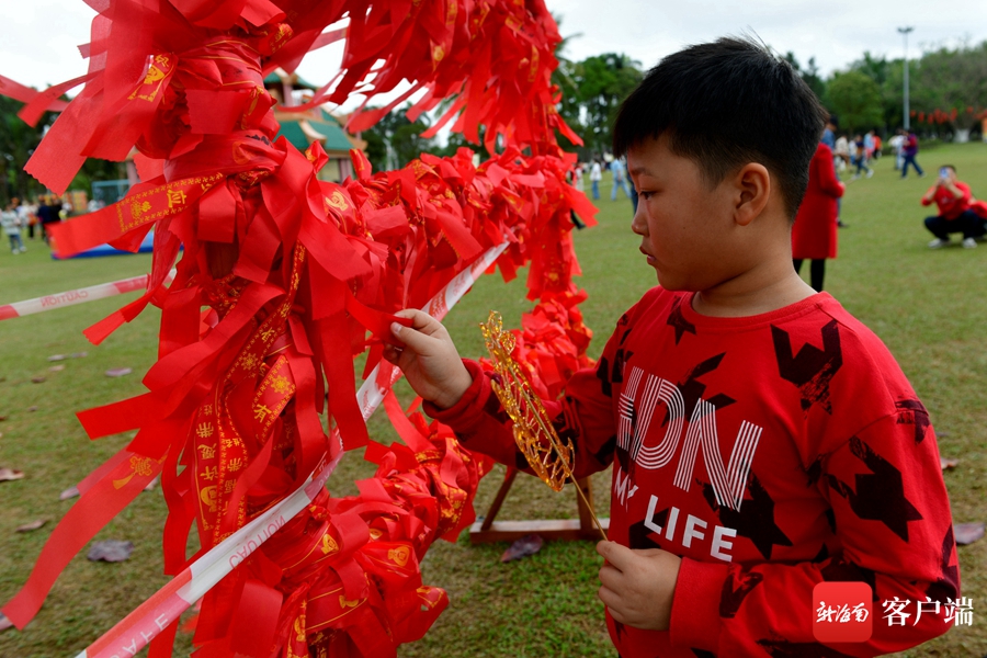 小朋友在萬綠園祈福。記者 陳衛東攝