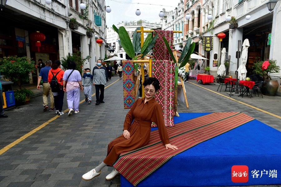 騎樓老街的黎錦展示。記者 陳衛東攝