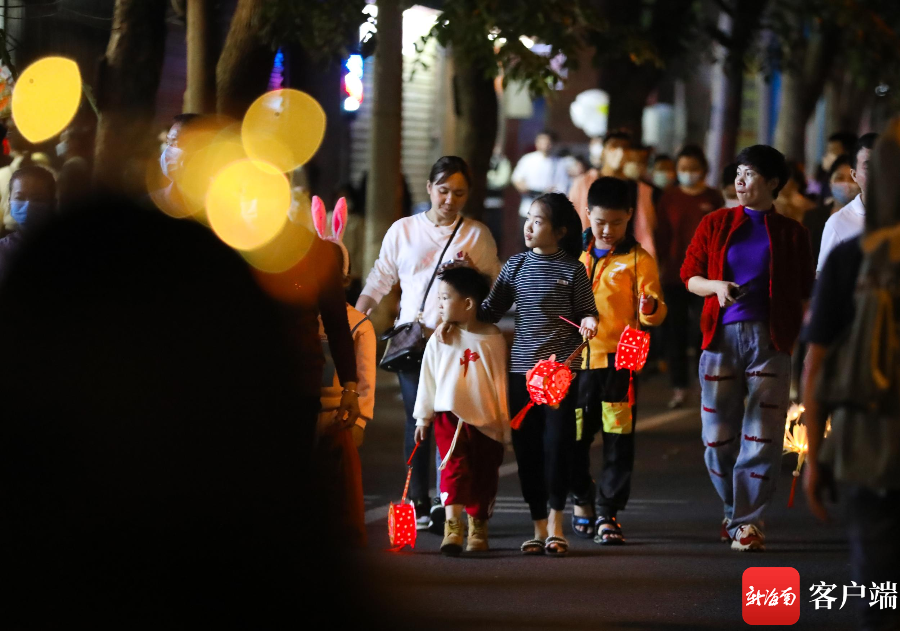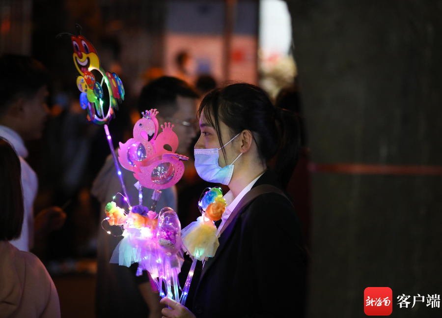 海口府城元宵夜,市民帶著各類燈飾。記者 姚皓 攝