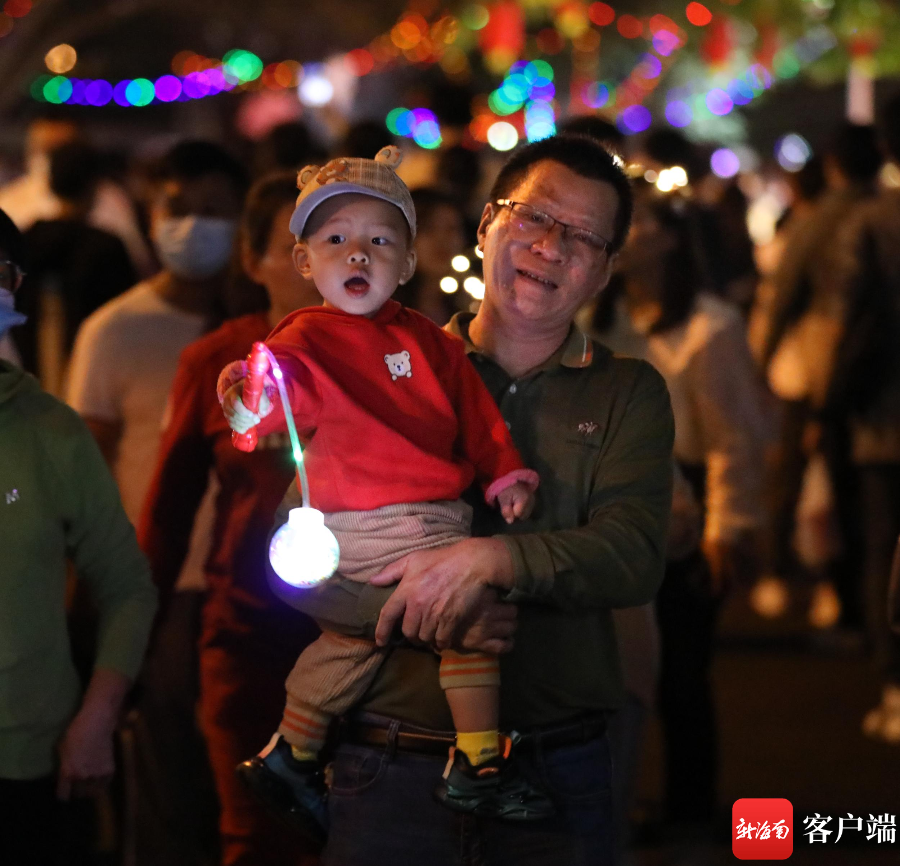 新海南客戶端、南海網、南國都市報2月5日消息(記者 姚皓)2月5日是農歷正月十五元宵節,當晚海口最熱鬧的民俗活動之一便是瓊山府城的元宵換花節。記者在現場看到,眾多市民游客佩戴起各不相同的燈光飾品走在人山人海的熱鬧氛圍中,以微光點亮了元宵夜,這也是當晚一道靚麗的風景線。
