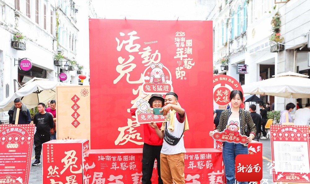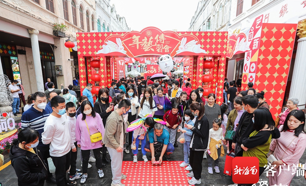 2月5日, 2023“兔飛猛進·藝迎新春”海南首屆國潮年藝節2月5日在海口騎樓老街火熱進行。記者了解到,自國潮年藝節啟動以來,吸引了40萬余人次現場游玩。