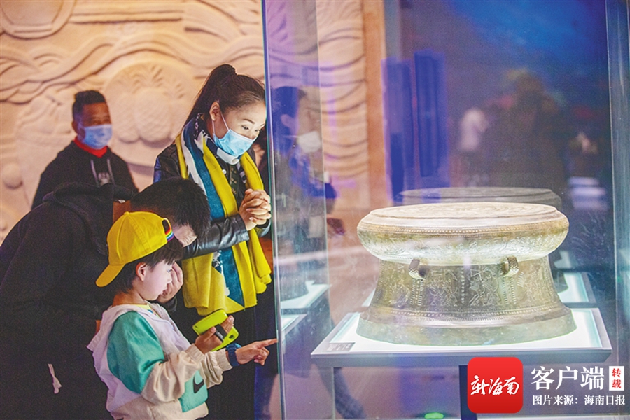 日前,在省博物館“方外封疆”海南歷史陳列展廳里,一面漢代銅鼓引起海口市第二中學初三學生陳飛妃的注意。她停下腳步,拿起手機,拉近鏡頭,記錄銅鼓細節。