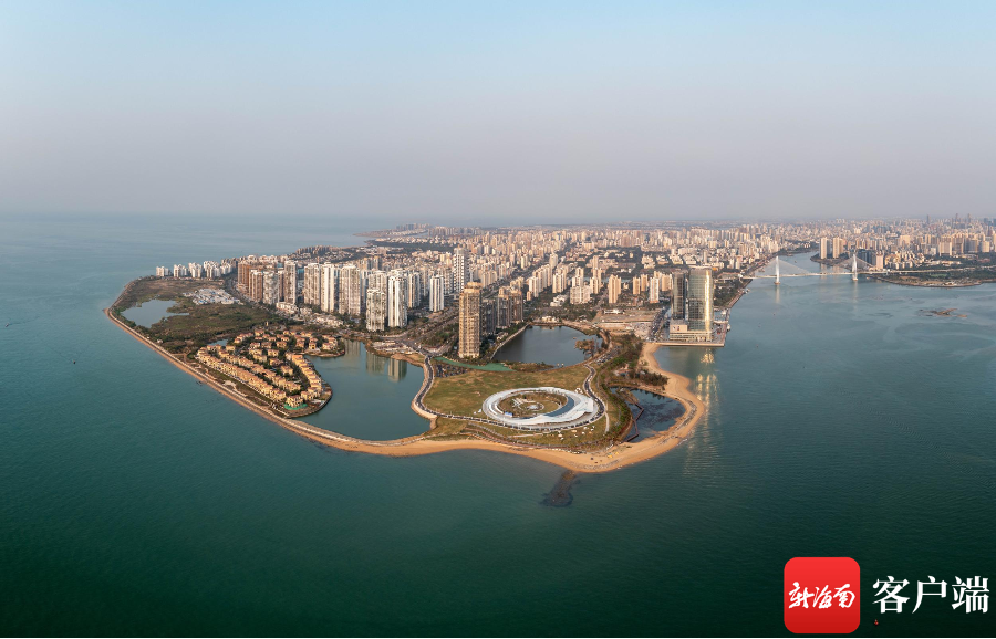 高空俯瞰位于海甸島美麗沙海岸西北處的海口灣6號高標準驛站——“天空之山”。記者 劉洋攝