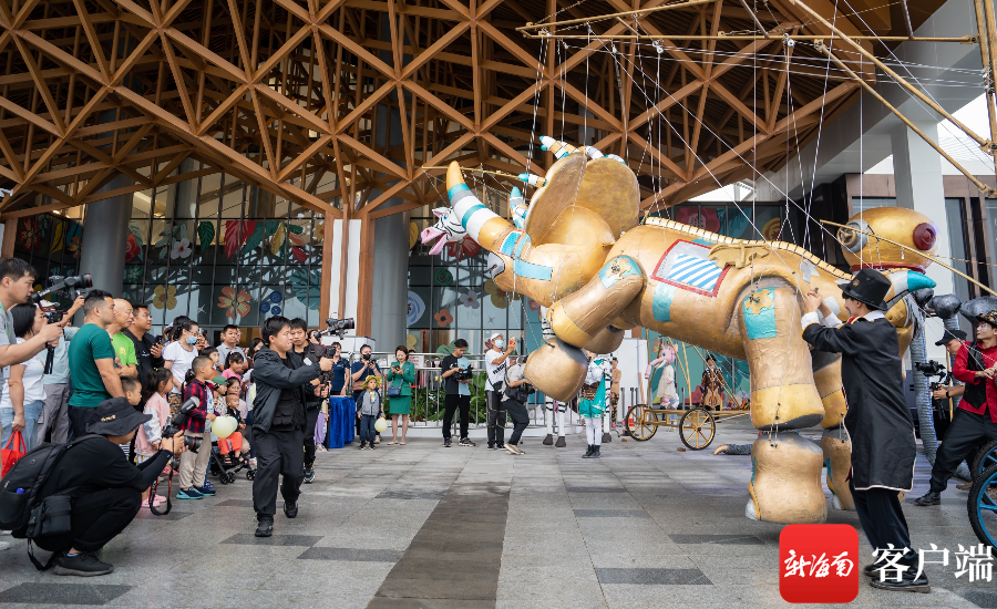 新海南客戶端、南海網、南國都市報4月8日消息(記者 張野)4月8日,由海南省演藝集團主辦,海南省演藝集團藝術培訓中心承辦的“2023海南自貿港國際兒童戲劇節”新聞發布會在萬寧王府井免稅港舉行。同時,“2023海南自貿港國際兒童戲劇節”戲劇嘉年華第一站——萬寧戲劇嘉年華也正式啟幕,集“演出+巡游+美陳”的沉浸式親子互動項目“巨型木偶大馬戲”作為此次嘉年華的亮點活動,為現場大小游客帶去了震撼與趣味并存的木偶戲大秀。