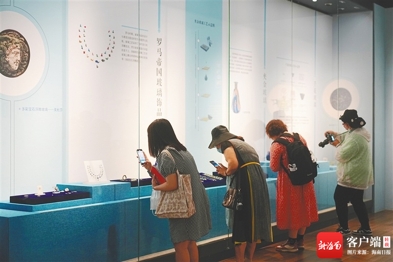 4月20日,觀眾在海南省博物館觀看“瑠光異彩——絲路上的古玻璃器藝術(shù)展”。海南日?qǐng)?bào)記者 張茂 攝