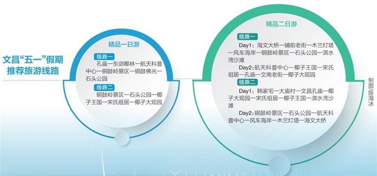 為此,文昌串聯起相關路線,推出了一日游和兩日游路線,為游客提供旅游參考。