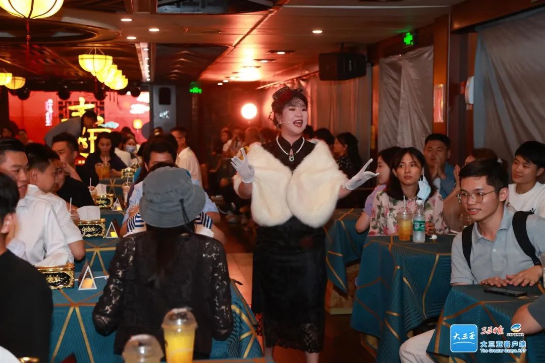 “從民國夜宴到航海絲綢之旅,打造極致的觀演新體驗。觀眾可以在演出中間吃喝玩樂,完全打破傳統演出的邊界。”三亞旅文集團相關負責人介紹,當游客踏上“永樂01·夢回明朝”仿古船,他們便進入一場上海灘的豪門盛宴,可以在席間品嘗精致可口的美味茶點,欣賞“百樂門”花旦的柔情歌舞,觀賞超近景魔術,更有唯美百變的光影色調營造氛圍。