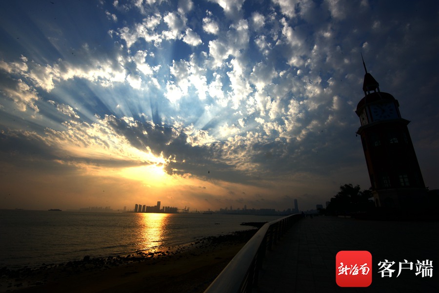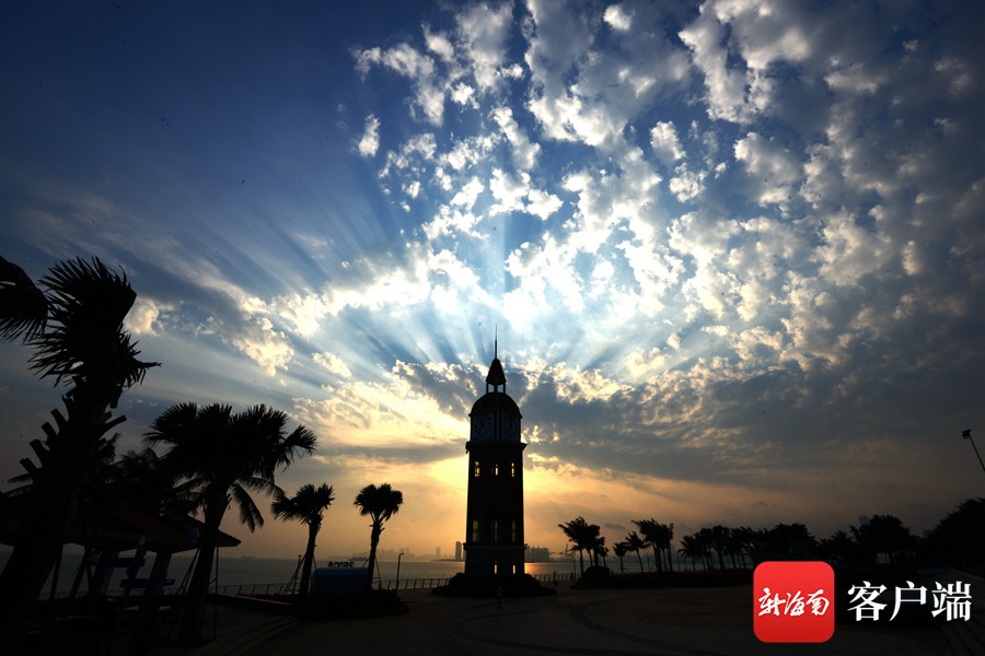 在清晨、日落時分或者雨后云層較多的時候,均會出現(xiàn)“丁達(dá)爾光”。此前,記者就曾多次拍到了海口天空出現(xiàn)的丁達(dá)爾現(xiàn)象。