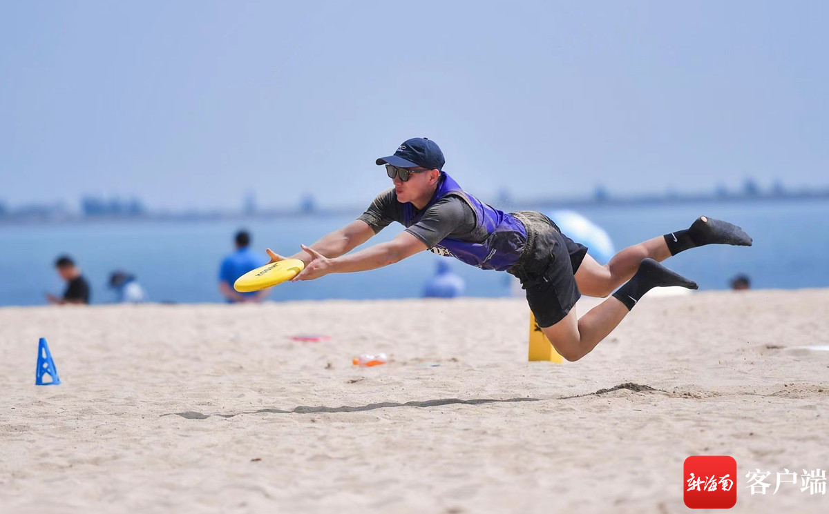 當(dāng)天上午,在專業(yè)教練的指導(dǎo)下,數(shù)十位市民游客學(xué)習(xí)了飛盤(pán)技巧、團(tuán)隊(duì)協(xié)助,并進(jìn)行3V3比賽、飛盤(pán)射門等互動(dòng)。在沙灘上奔跑,難度較草地、平地更大,但大家在熱浪中絲毫不減熱情。