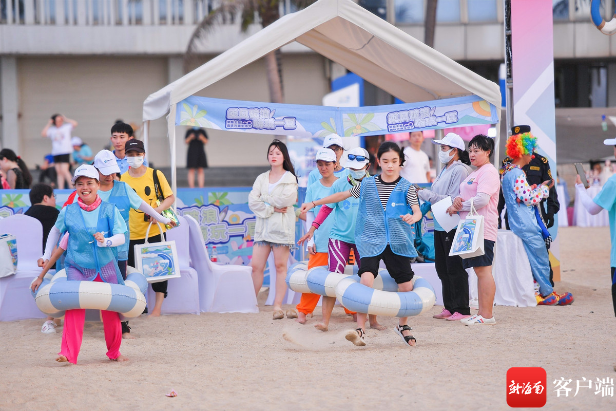 同步進(jìn)行的踏浪拔河、趣味毛毛蟲(chóng)等趣味運(yùn)動(dòng),給參與的市民游客們帶來(lái)諸多樂(lè)趣。踏浪拔河是在近海的淺灘進(jìn)行,大家隨意進(jìn)行組合,無(wú)論男女老幼,只為從相互的較勁中獲得樂(lè)趣;趣味毛毛蟲(chóng)則需要大家同步運(yùn)動(dòng),帶動(dòng)體長(zhǎng)碩大的“毛毛蟲(chóng)”玩偶移動(dòng),速度最快的組合可以得到獎(jiǎng)品。