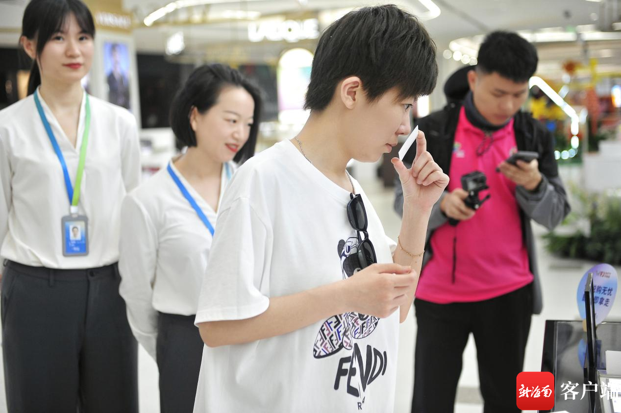 白鴿、韓雨、王曉彤一行率先來到王府井國際免稅港,免稅商品種類豐富,價格誘人,她們逛了香化、電子數碼區,相中了不少產品。白鴿說,比賽結束后她會再來王府井好好逛一逛,想購入香水等產品。韓雨也表示,王府井很多免稅商品折扣力度大,離島之前打算再去一趟。