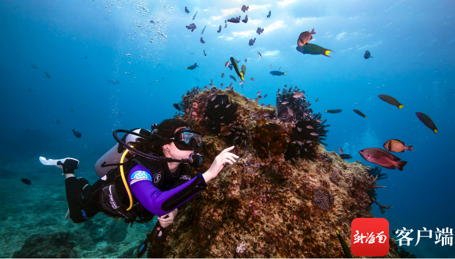 游客在蜈支洲島潛水。蜈支洲島旅游區(qū)供圖