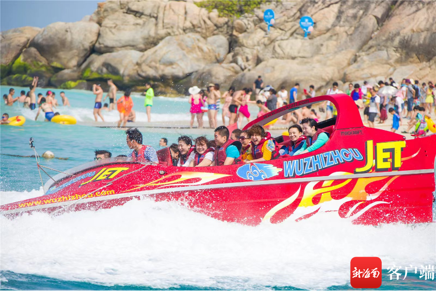 游客在蜈支洲島體驗水上項目。蜈支洲島旅游區(qū)供圖