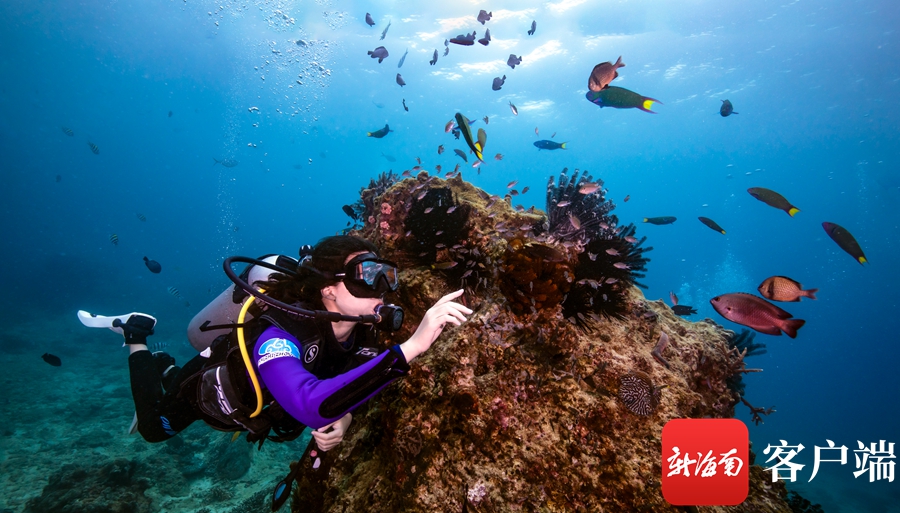 ?游客在蜈支洲島旅游區潛水。蜈支洲島旅游區供圖