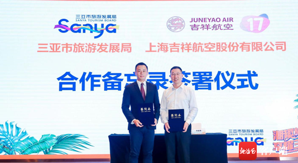 會上,三亞市旅游發展局與上海吉祥航空股份有限公司舉行合作備忘錄簽署儀式。上海吉祥航空股份有限公司于2006年9月正式開航運營,于2017年5月成為星空聯盟全球首家“優連伙伴”。未來,雙方將在航線拓展、產品開發、旅游營銷業務等方面展開深度合作,共同推進三亞建設國際旅游勝地。